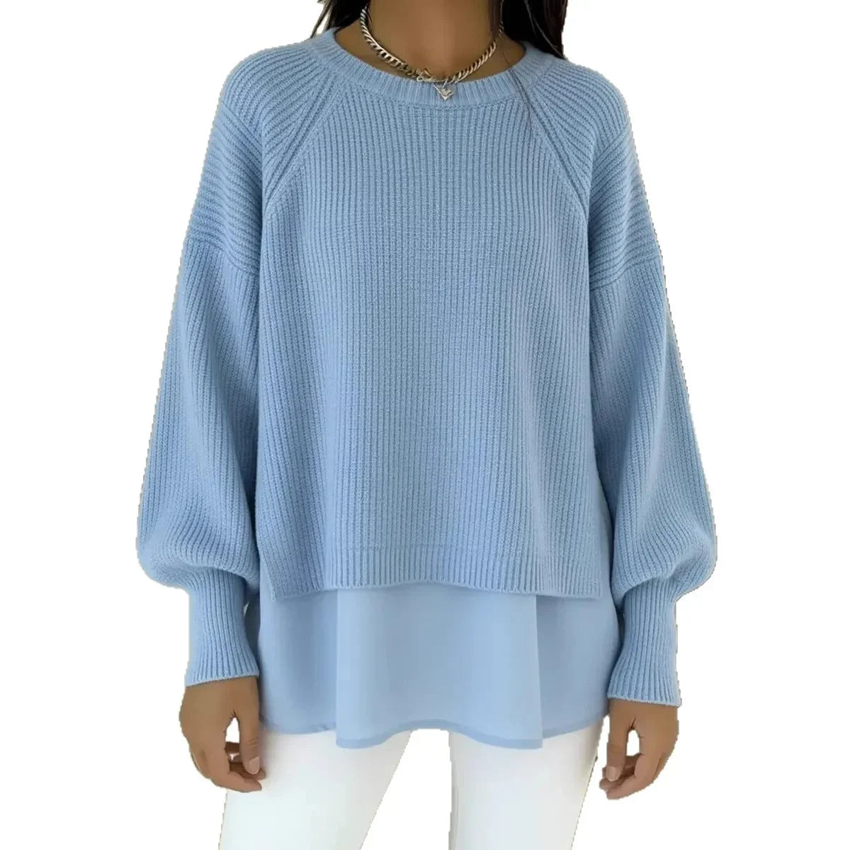 Desde los frescos paseos de otoño hasta las acogedoras tardes de invierno, este suéter de cuello redondo presenta un dobladillo de gasa favorecedor y elegantes mangas de linterna, lo que lo convierte en una pieza imprescindible tanto para los días casuales como para las noches más elegantes.