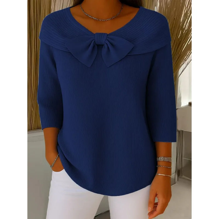 Perfect for layering on chilly days or wearing solo for a polished look, this knitted sweater features a fashionable bow accent and comes in versatile solid colors. Enjoy its comfortable fit from daily err